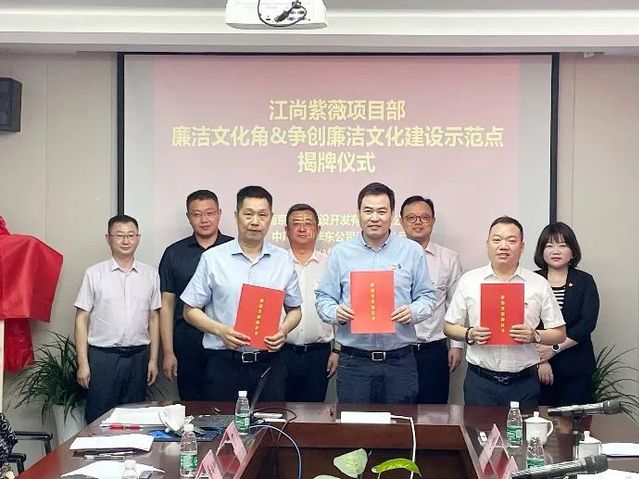 在學習貫徹習近平新時代中國特色社會主義思想主題教育中,為加強清廉教育,引導員工繃緊廉潔自律這根弦,確保工程項目建設廉潔高效,近日,奧體公司和江山智聯(lián)公司聯(lián)合黨總支(以下簡稱“聯(lián)合黨總支”)在江尚紫薇項目部創(chuàng)建廉潔文化角。相關參建單位參加。