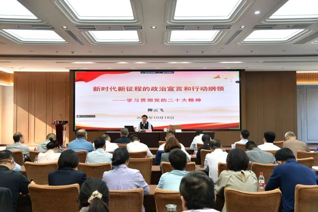 會上,柳云飛教授以《新時代新征程的政治宣言與行動綱領(lǐng)——學(xué)習(xí)貫徹黨的二十大精神》為題,主要從“黨的二十大的主題和主要成果”“黨的二十大提出的新思想新戰(zhàn)略新部署”“黨的二十大的重大意義”“深入學(xué)習(xí)貫徹黨的二十大精神,推動高質(zhì)量發(fā)展”等四個方面,深入闡述了黨的二十大精神的深刻內(nèi)涵。本次宣講內(nèi)容豐富、深入淺出,對于集團(tuán)全體黨員干部職工進(jìn)一步全面理解、準(zhǔn)確把握和深入貫徹黨的二十大精神具有很強的指導(dǎo)意義。