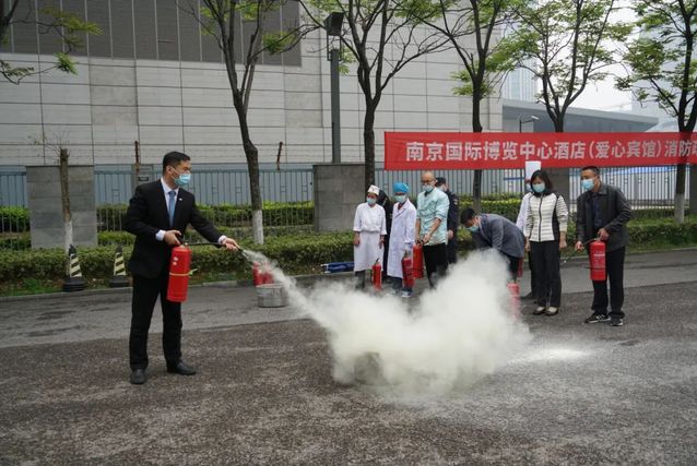 南京國際博覽中心酒店全體員工集體參與了消防演練。此次演練分為安全疏散、醫(yī)療救護和滅火演練三個部分。