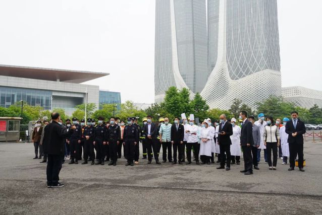 2021年4月23日上午,河西集團南京國際博覽中心酒店(愛心賓館)消防疏散演練成功舉行。
