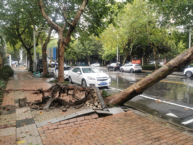 上周末,伴隨強(qiáng)冷空氣來襲,我市出現(xiàn)陰雨和大風(fēng)降溫天氣。10月16日中午,位于建鄴區(qū)螺絲橋大街西側(cè)濱江小區(qū)附近的一棵胸徑約40公分,重達(dá)4.3噸的法桐無力承受風(fēng)雨侵襲出現(xiàn)倒伏,給過往車輛及行人帶來極大的安全隱患。