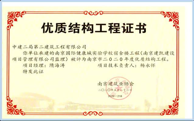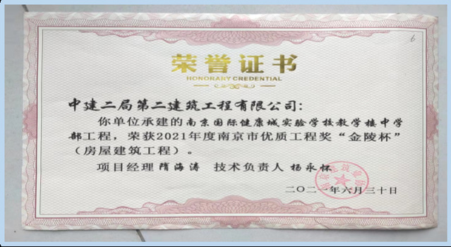 2021年12月6日,中國施工企業(yè)管理協(xié)會公布2020-2021國家優(yōu)質(zhì)工程獎獲獎名單,河西集團新城公司所屬南京河西工程項目管理有限公司代建的南京國際健康城實驗學(xué)校項目喜獲該獎項。國家優(yōu)質(zhì)工程獎設(shè)立于1981年,是經(jīng)國務(wù)院確認的我國工程建設(shè)領(lǐng)域設(shè)立最早,規(guī)格最高,跨行業(yè)、跨專業(yè)的國家級質(zhì)量獎。