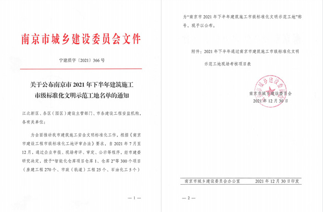 近日,河西集團(tuán)新城公司河西金融中心項(xiàng)目喜獲市建委工程質(zhì)量安全監(jiān)管處發(fā)布的2021年下半年“市標(biāo)準(zhǔn)化文明示范工地”稱號。