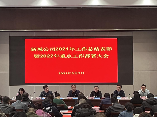 3月3日下午,新城公司召開2021年工作總結(jié)表彰暨2022年重點工作部署大會,河西集團黨委副書記、董事繆昌根,新城公司領(lǐng)導班子成員及全體員工參加。
