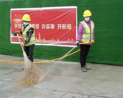 項目部成立疫情防控領導小組,編制防疫應急預案,配備防疫物資,設置隔離室,對人員進行體溫測量,實行人員登記和健康碼管理,開展防疫知識宣傳培訓,提高全體人員防控意識,安排專人定期對各區(qū)域進行消殺,確保防疫安全。