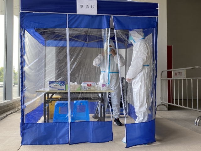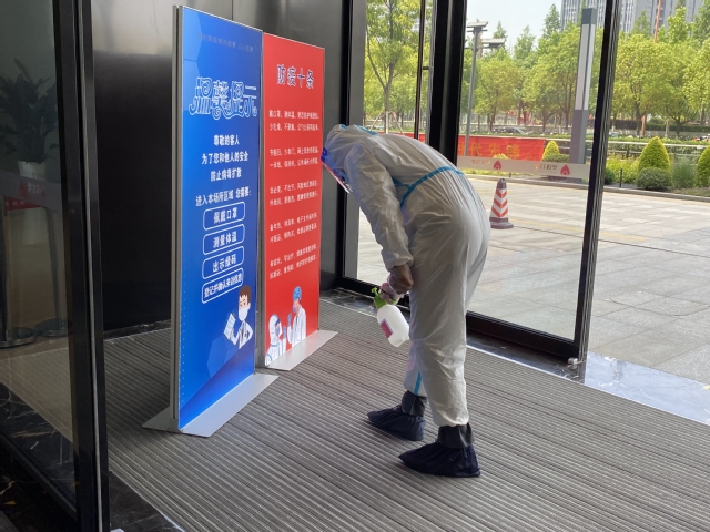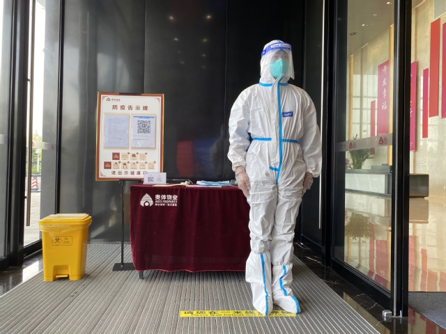 本次演練以“一名體溫異常,來自疫情中風(fēng)險地區(qū)的訪客”到訪為情景展開演練,模擬了發(fā)現(xiàn)體溫異常、立即報告、啟動應(yīng)急預(yù)案、開展應(yīng)急處置、穿戴防護(hù)服、轉(zhuǎn)運(yùn)隔離、現(xiàn)場消殺等處置步驟及措施,演練過程嚴(yán)肅、認(rèn)真、有序。