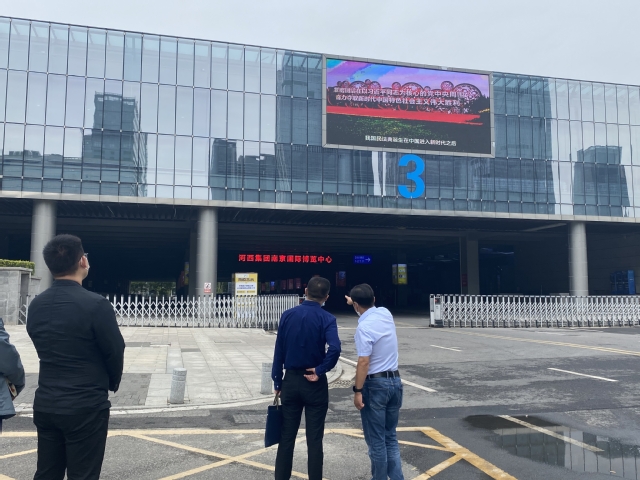 5月26日上午,市司法局黨組成員、副局長(zhǎng)賀慶帶隊(duì)蒞臨集團(tuán)就法治宣傳工作開展情況進(jìn)行調(diào)研指導(dǎo)。在集團(tuán)副總經(jīng)理、黨委委員曹志堅(jiān)陪同下,調(diào)研組一行先后赴國(guó)際博覽中心、青年文化體育公園、魚嘴濕地公園白鷺廣場(chǎng)等地,對(duì)人群集中地段的戶外大型電子顯示屏進(jìn)行實(shí)地考察,現(xiàn)場(chǎng)觀看了民法典公益廣告及宣傳標(biāo)語等播放情況。現(xiàn)場(chǎng)調(diào)研后,曹志堅(jiān)對(duì)集團(tuán)法治文化環(huán)境及建設(shè)情況進(jìn)行了詳細(xì)匯報(bào)。