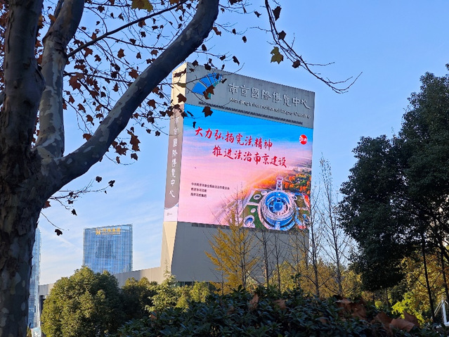 憲法是國家的根本大法,是治國安邦的總章程。今年12月4日是第十個國家憲法日,12月4日所在的周是第六個“憲法宣傳周”。為深入學習宣傳貫徹習近平法治思想,著力營造學習宣傳憲法的濃厚氛圍,弘揚憲法精神,維護憲法權威,集團充分借力戶外大屏媒介載體進行普法宣傳,會展、公園、酒店等板塊根據(jù)集團部署聯(lián)運同步點亮“大力弘揚憲法精神、推進法治南京建設”宣傳標語,利用各類公共場所電子顯示屏滾動播放,使憲法宣傳走進千家萬戶。