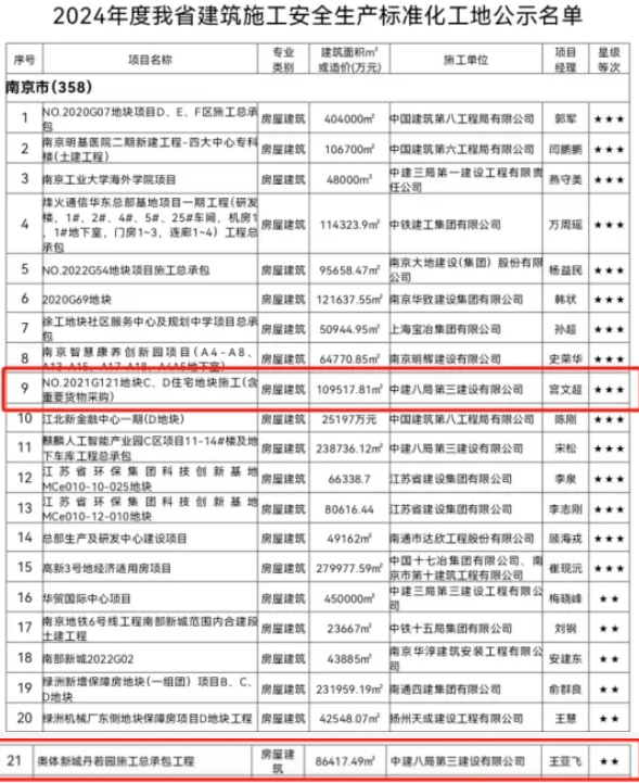 根據(jù)《南京市建設(shè)工程市級(jí)標(biāo)準(zhǔn)化工地評(píng)審辦法》,經(jīng)過(guò)嚴(yán)格評(píng)審程序,南京市城鄉(xiāng)建設(shè)委員會(huì)公布了2024年下半年南京市房屋市政工程安全文明標(biāo)準(zhǔn)化工地名單。河西集團(tuán)奧體建設(shè)開(kāi)發(fā)的丹若園、江尚紫薇、瑞香園、錦尚紫蘭四個(gè)項(xiàng)目脫穎而出,獲此殊榮。這些項(xiàng)目涵蓋不同施工階段,均展現(xiàn)了奧體建設(shè)對(duì)安全文明施工的高度重視,為集團(tuán)后續(xù)同類項(xiàng)目施工管理樹(shù)立了良好典范。